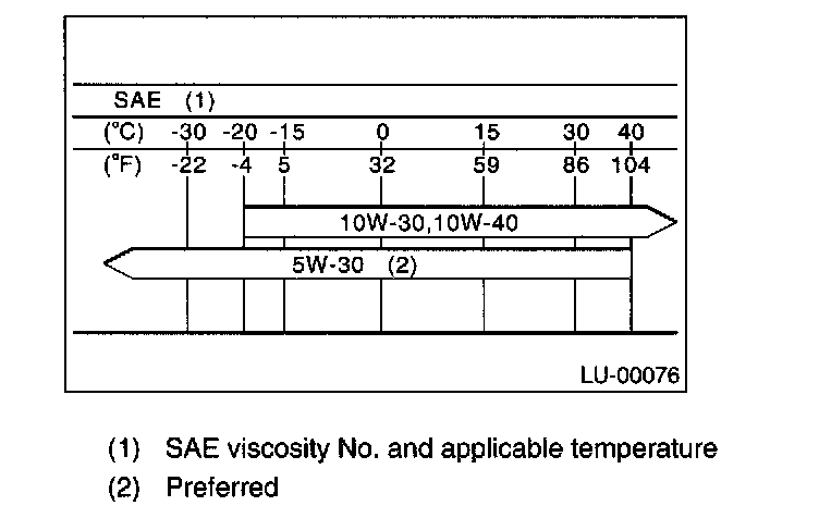 NOTE: If the vehicle is used in areas with very high temperatures or for other heavy duty applications, the following viscosity oils may be used: API classification: SL, SJ or SH SAE viscosity No.: 30, 40, 10W-50, 20W-40, 20W50.