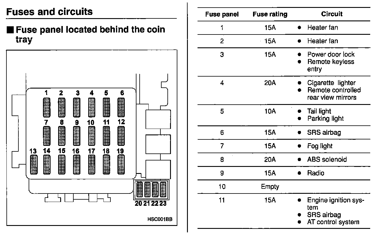 Fuse Panel Located Behind Coin Tray: