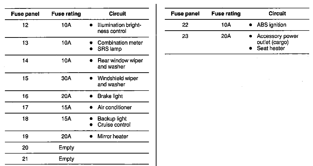 Fuse Panel Details