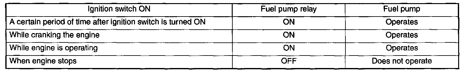 Using the signal from the crankshaft position sensor, the ECM controls operation of the fuel pump by turning its relay ON or OFF. To improve safety, the fuel pump is stopped if the engine stalls with the ignition switch ON.