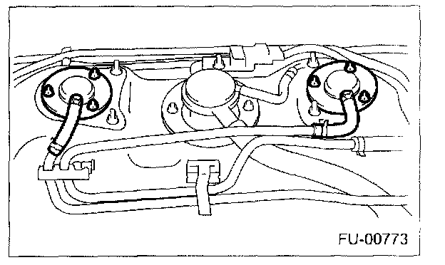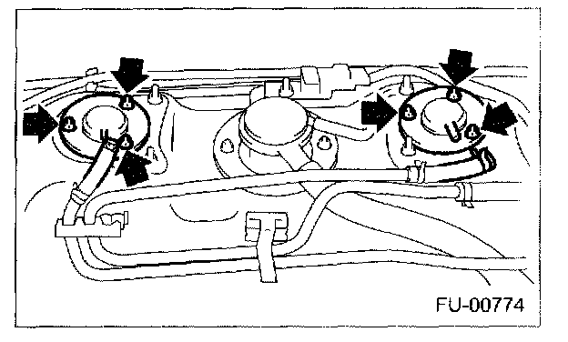 3. Move the clip and disconnect the evaporation hose from the fuel cut valve.
