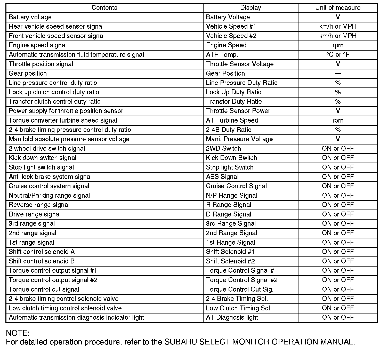 6. Using the Subaru Select Monitor, call up DTC and various data, then record them.