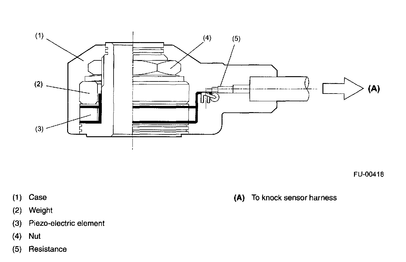 - In addition to a piezo-electric element, the sensor has a weight and case as its components. If knocking occurs in the engine, the weight in the case moves causing the piezo-electric element to generate a voltage.