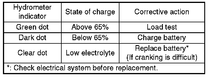 1. Measure the specific gravity of electrolyte using a hydrometer and a thermometer. Specific gravity varies with temperature of electrolyte so that it must be corrected at 20 °C (68 °F) using the following equation: