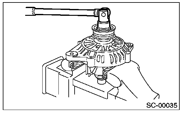 CAUTION: When holding the rotor with a vise, place aluminum plates or wooden pieces on the vise jaws to prevent rotor from damage.