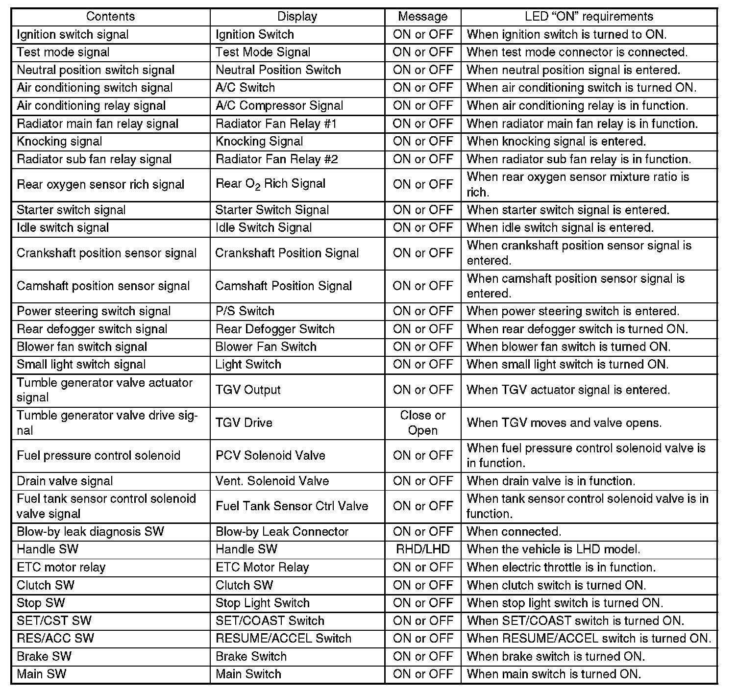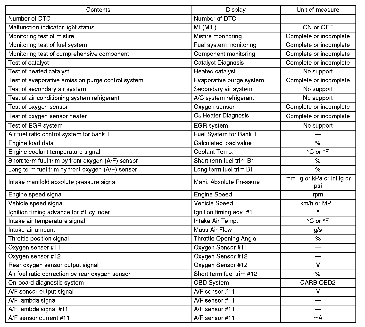 5. READ CURRENT DATA FOR ENGINE. (OBD MODE)