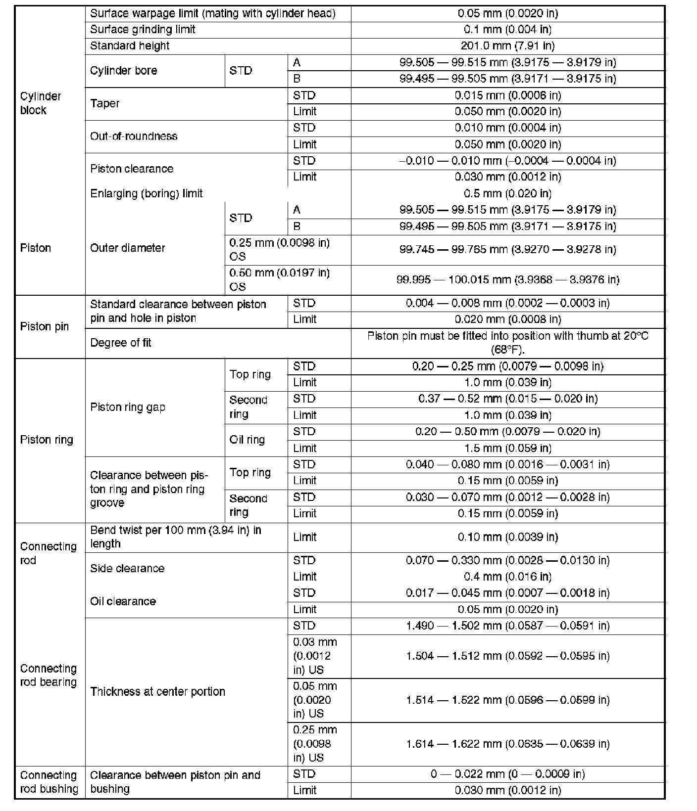 0.05 mm (0.0020 inch) US 51.934 - 51.950 mm (2.0447 - 2.0453 inch)