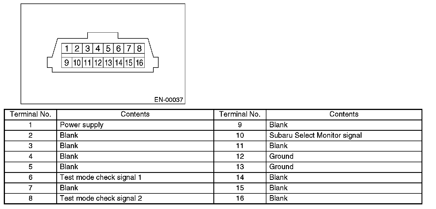 Data Link ConnectorNOTE: This connector is used both for OBD-II general scan tools and the Subaru Select Monitor.