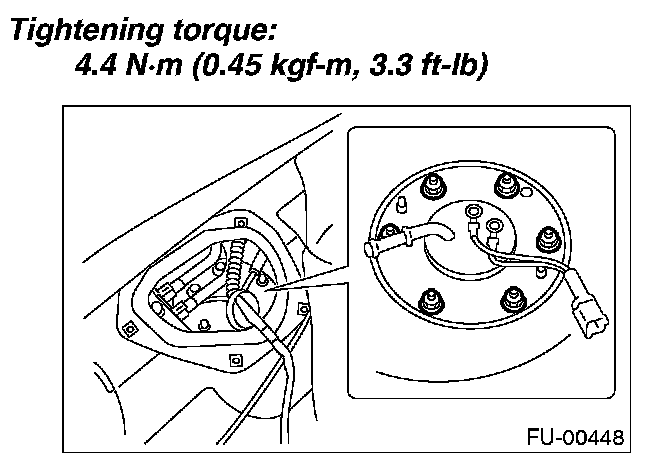 7. Remove bolts which install fuel sub level sensor on fuel tank.