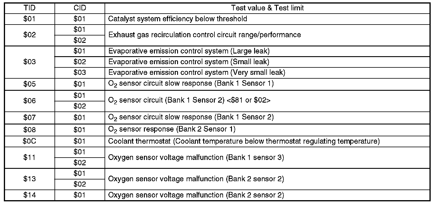 Refer to test value of troubleshooting and data of test limit on support data bit sequence table. List of support data is shown in the table.
