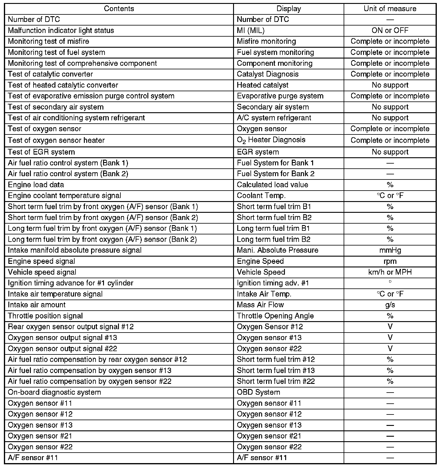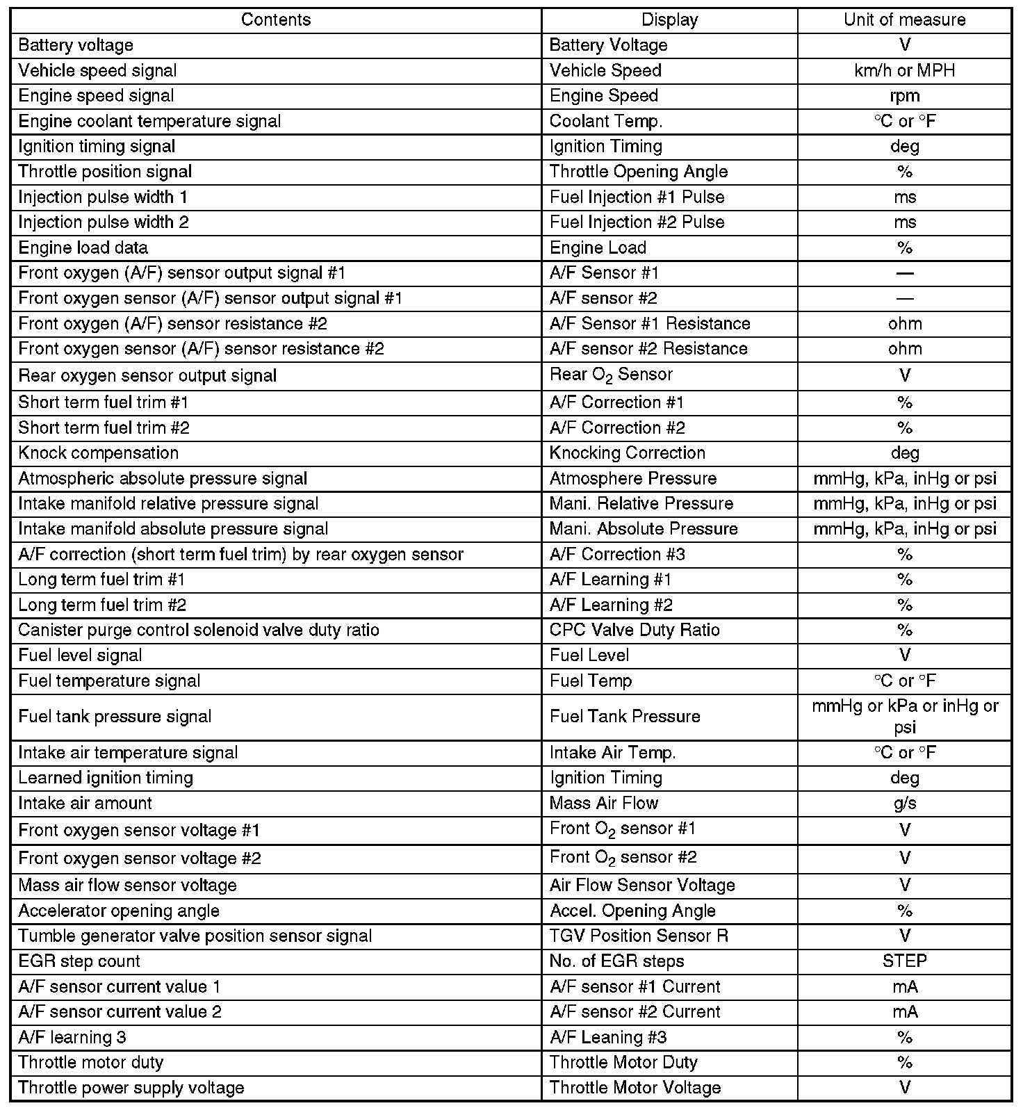 5. READ CURRENT DATA FOR ENGINE (OBD MODE)