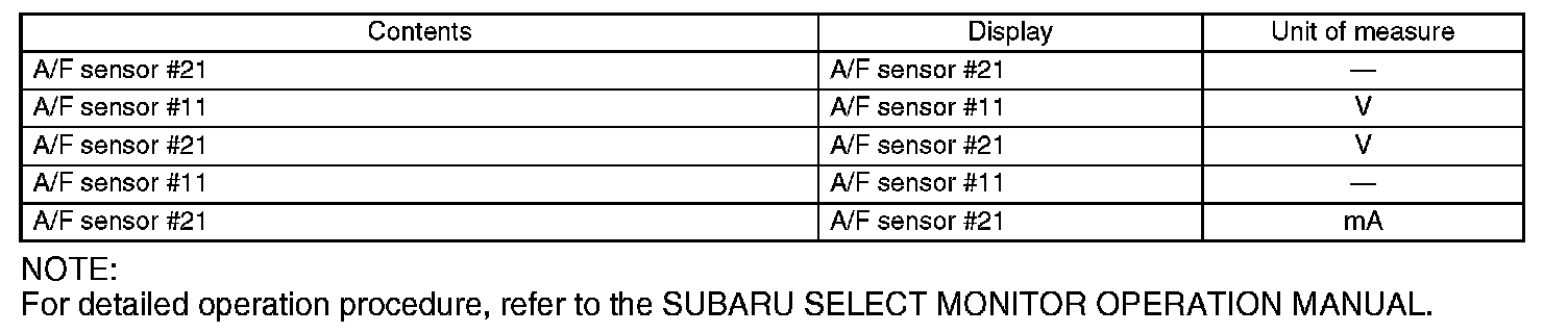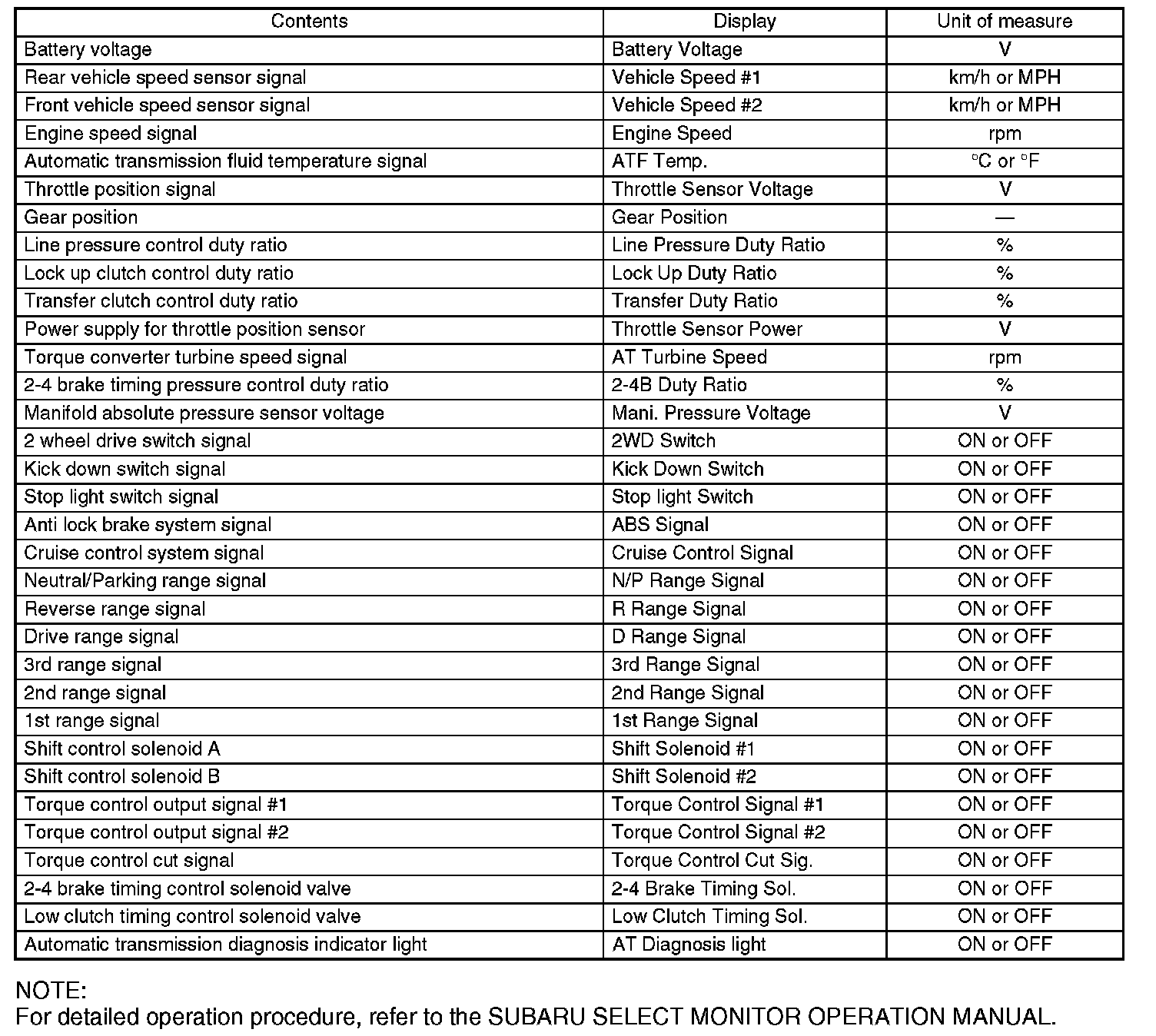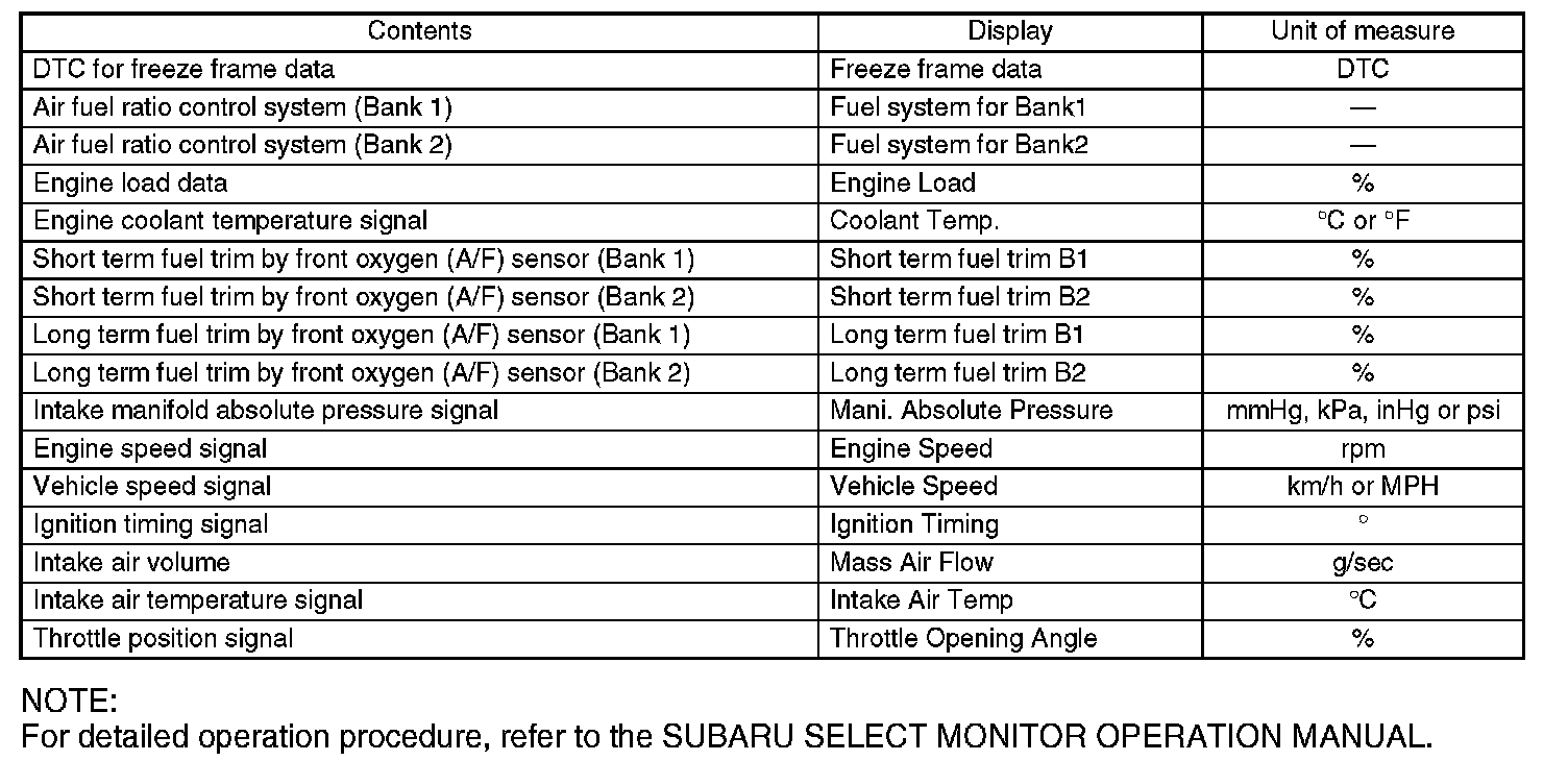 6. Using the Subaru Select Monitor, call up DTC and various data, then record them.