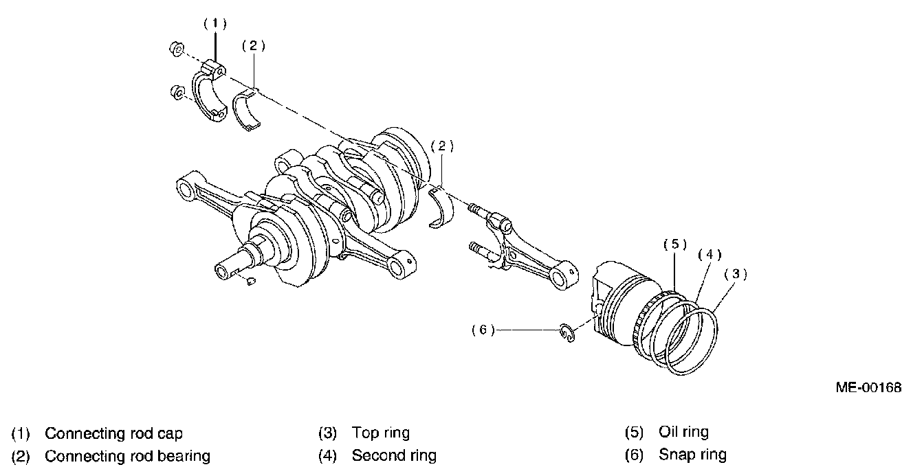 NOTE: Arrange removed connecting rod, connecting rod cap and bearing in order to prevent confusion.