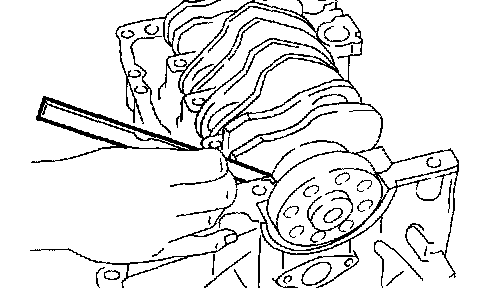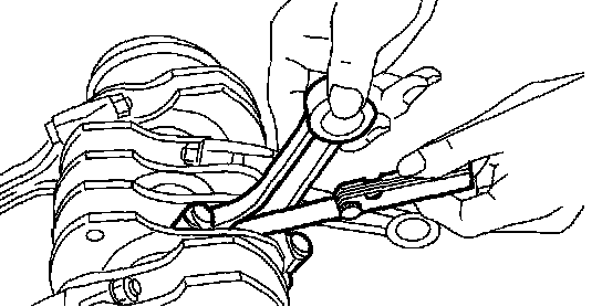 4. Measure the thrust clearance of crankshaft at center bearing. If the clearance exceeds the limit, replace bearing.