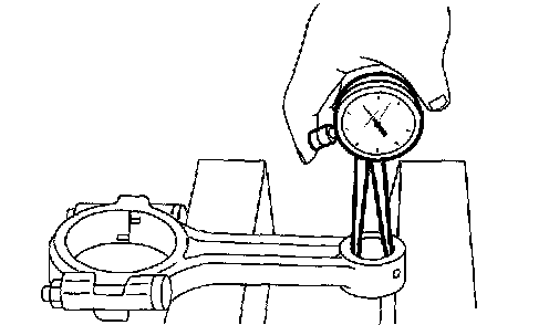 6. Inspect bushing at connecting rod small end, and replace if worn or damaged. Also measure the piston pin clearance at the connecting rod small end.