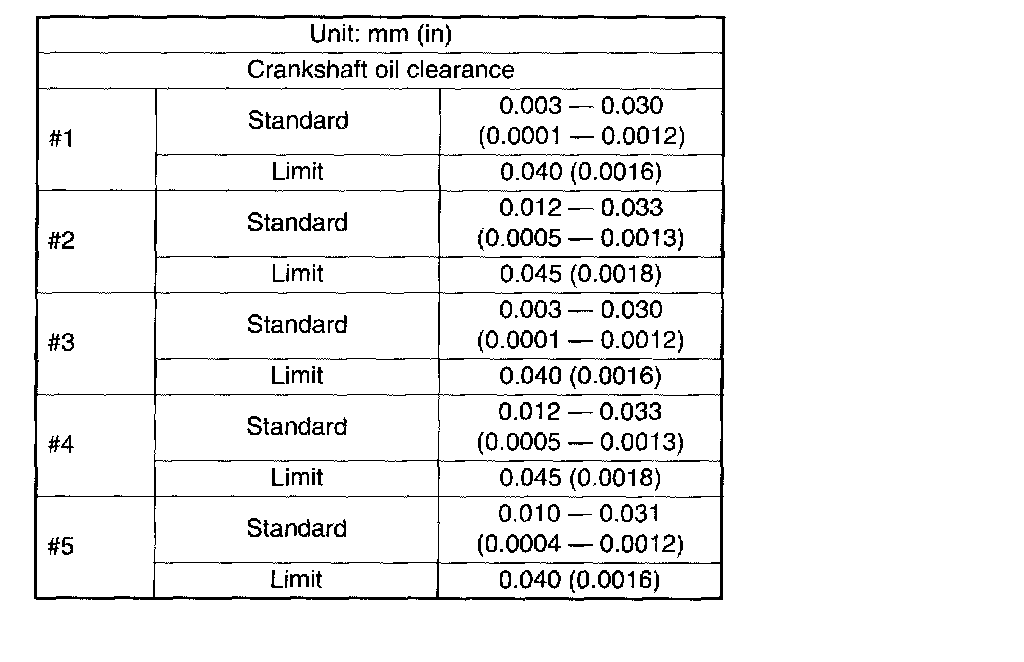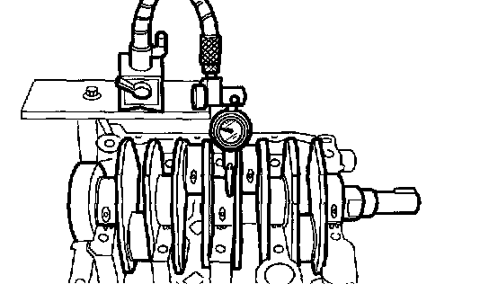 CAUTION: If a suitable V-block is not available, install #1 and #5 crankshaft bearing on cylinder block, position crankshaft on these bearings and measure crankshaft bend using a dial gauge.