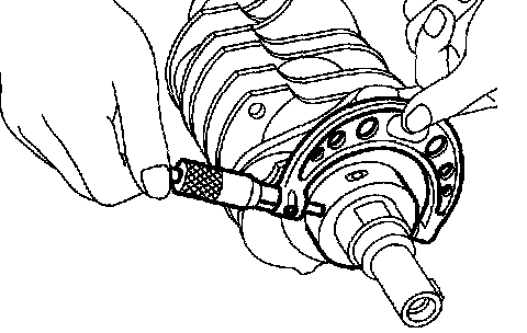 2. Measure the crankshaft bend, and correct or replace if it exceeds the limit.