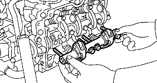 2. Arrange valve rocker arms, springs and shaft supports in assembly order and insert valve rocker shaft.