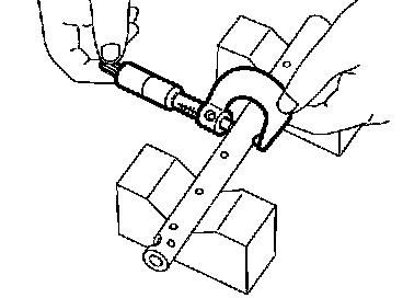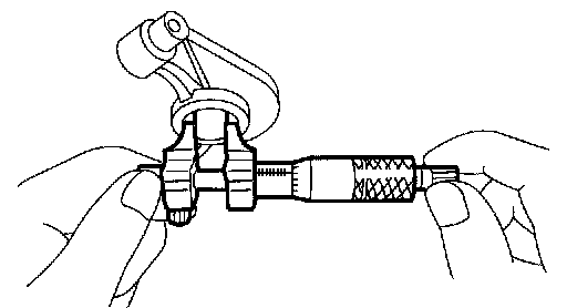 1. Measure inside diameter of valve rocker arm and outside diameter of valve rocker shaft, and determine the difference between the two (= oil clearance).