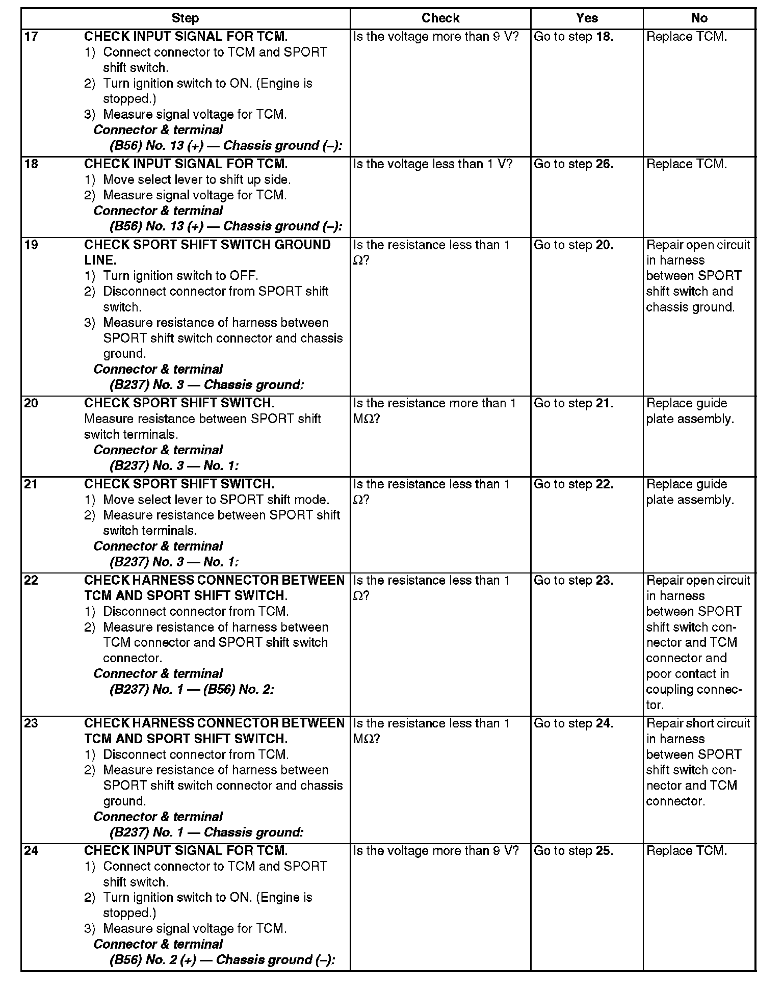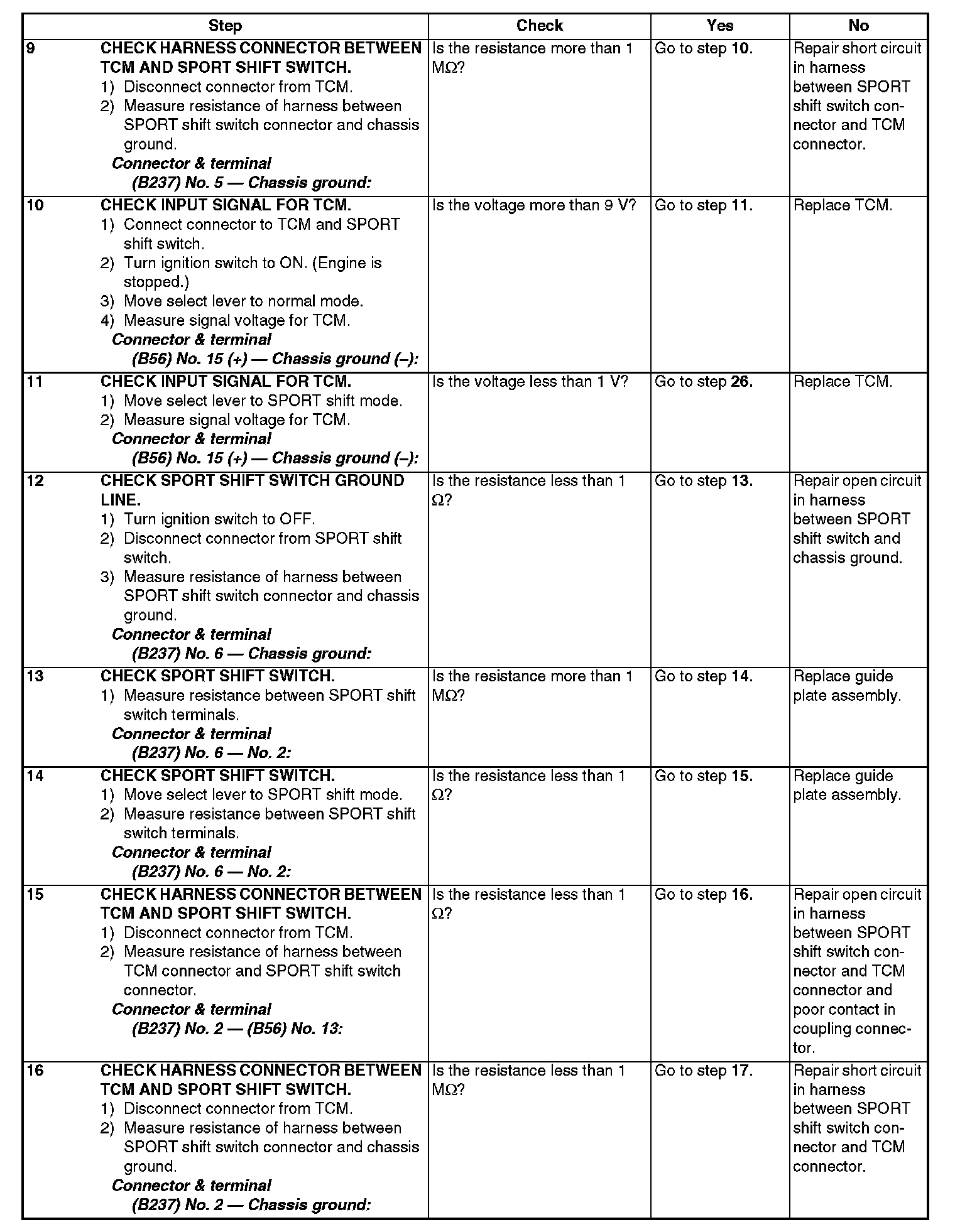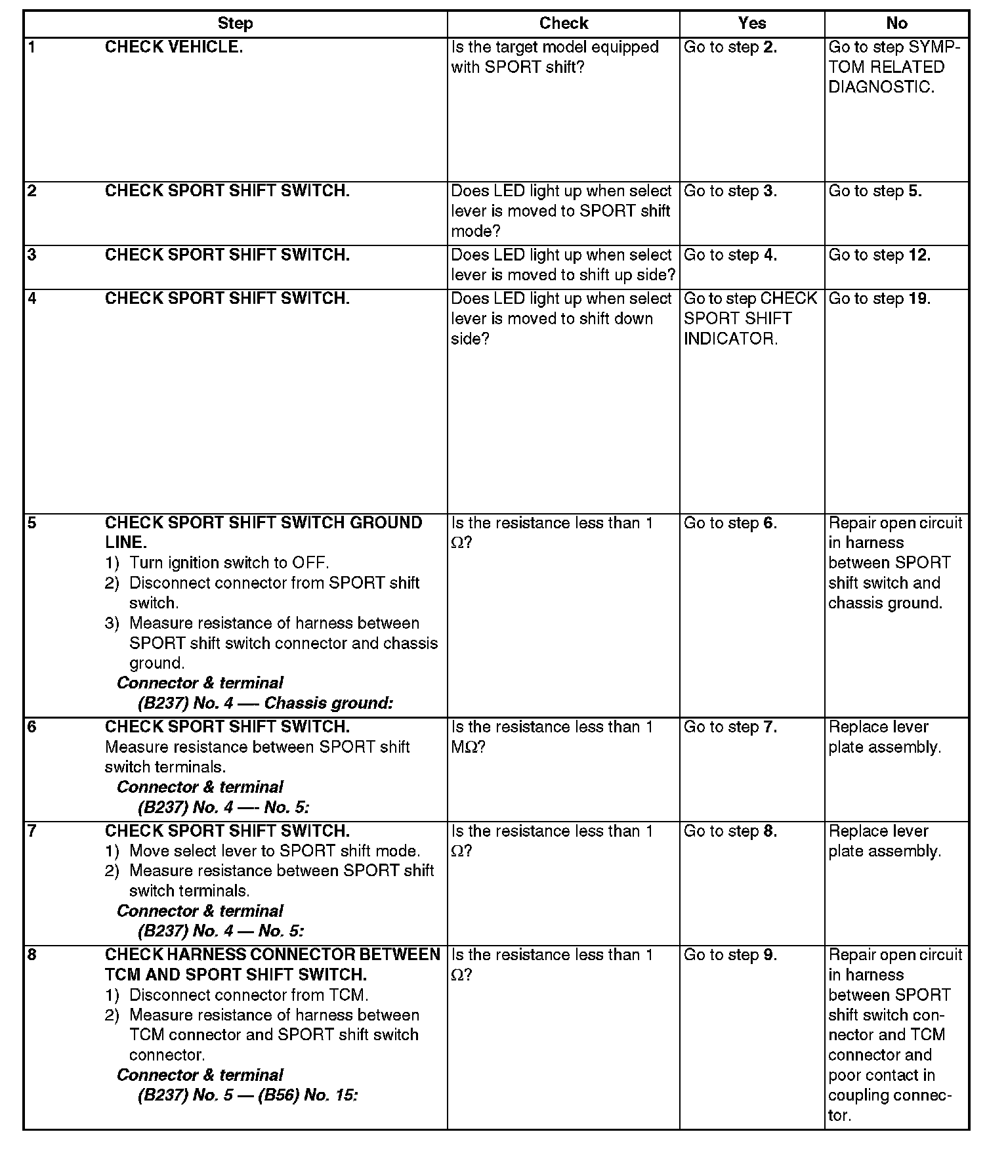 CHECK SPORT SHIFT SWITCH.Steps 1-8: