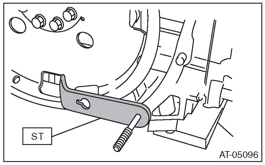 3) While checking the tightening angle with the ST, tighten the drive plate mounting bolts to the specified angle.