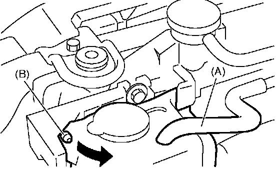 3. Pull out the reservoir tank to the arrow direction while pushing the claw (B).