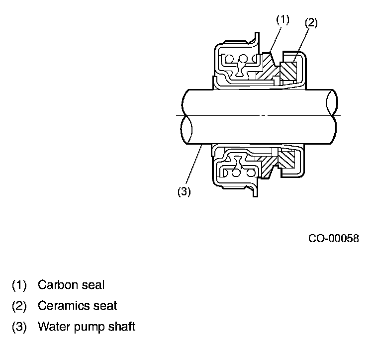 The mechanical seal has its seat tightly fitted on the water pump shaft. Since it is a hermetic seal forming an integral part of the water pump, the water pump cannot be disassembled.