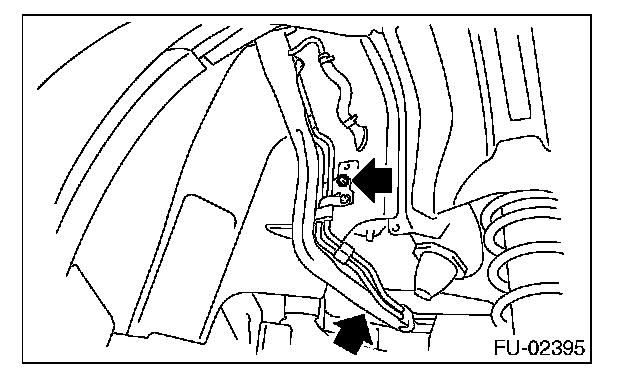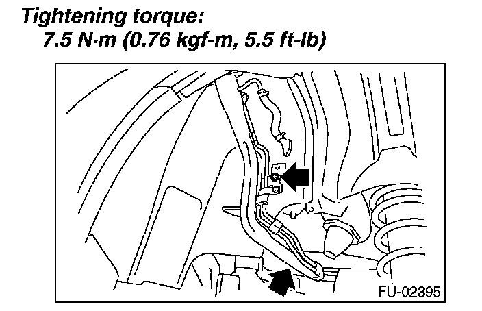5. Tighten the bolts which hold fuel filler pipe bracket on the body.