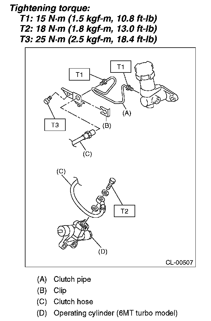 4) Disconnect the clutch pipe from the clutch hose and master cylinder.