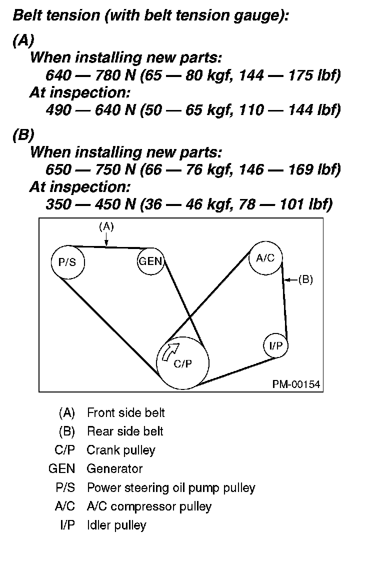 2) Check the V-belt tension and adjust it if necessary by changing the generator installing position or idler pulley installing position.