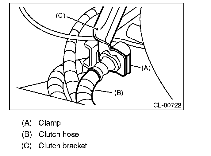 7) Pull out the clamp, then remove the clutch hose from the clutch bracket.