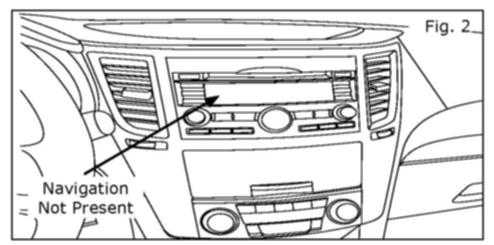 b) If factory camera is installed, check for presence of factory navigation display in center of interior dash. (Fig. 2)
