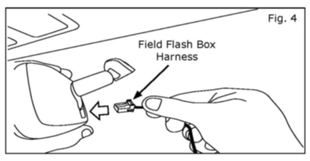 3) Locate field flash box harness and insert 12-pin connector into back of interior mirror. (Fig. 4)