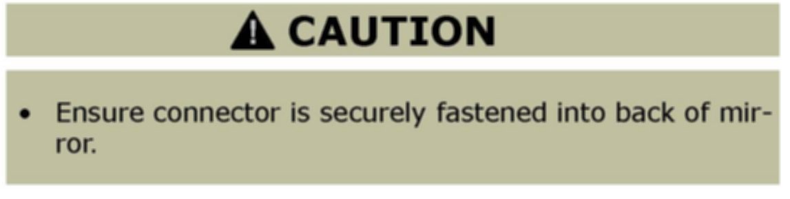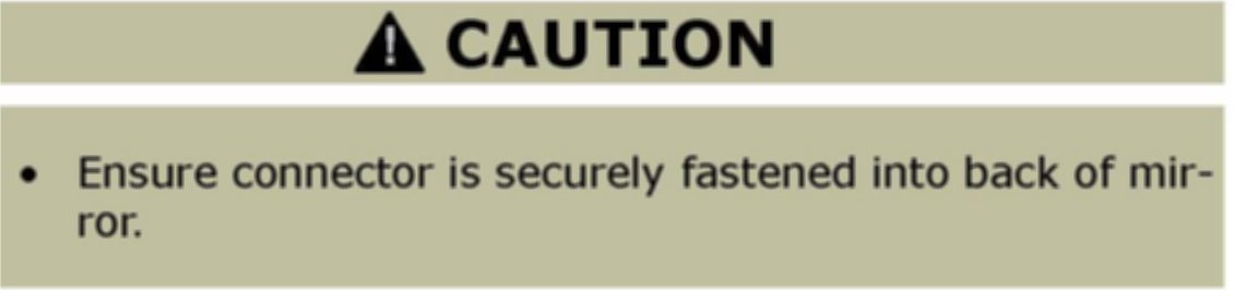 Failure to follow the cautions will result in damage to the electrical components of the mirror which is not a matter for warranty.