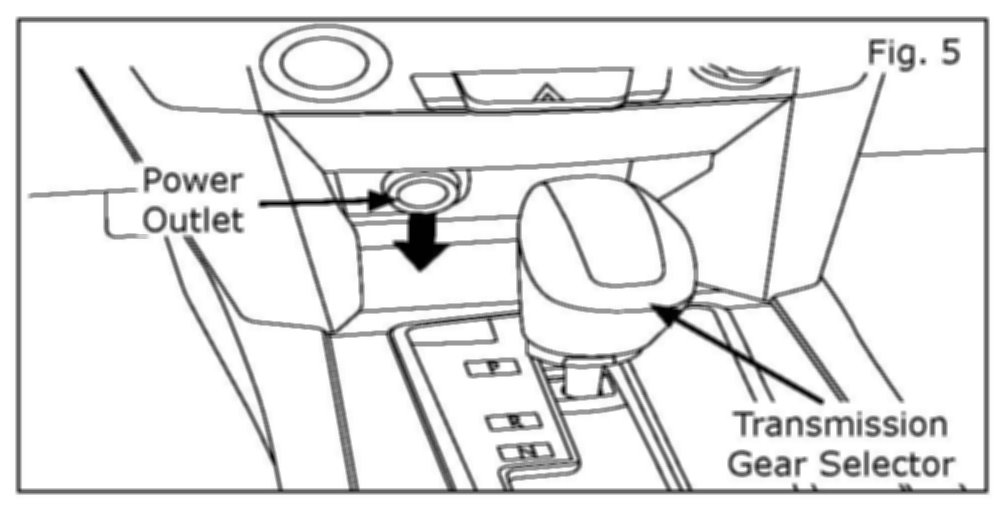 4) Locate power outlet, below climate control, near transmission gear selector. (Fig. 5)