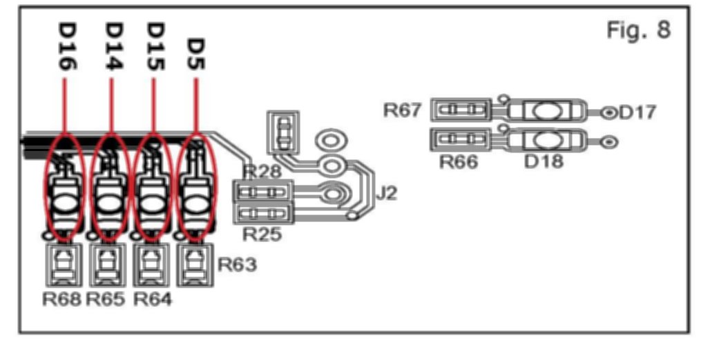7) Verify D5, D15, D14, and D16 LED's are all simultaneously flashing on the field flash box, indicating reflashing is in progress. (Fig. 8)