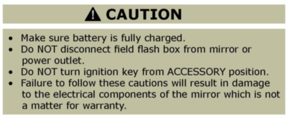 ^ Once the mirror has the updated software, re-flashing will not be required if the battery is disconnected in the future.