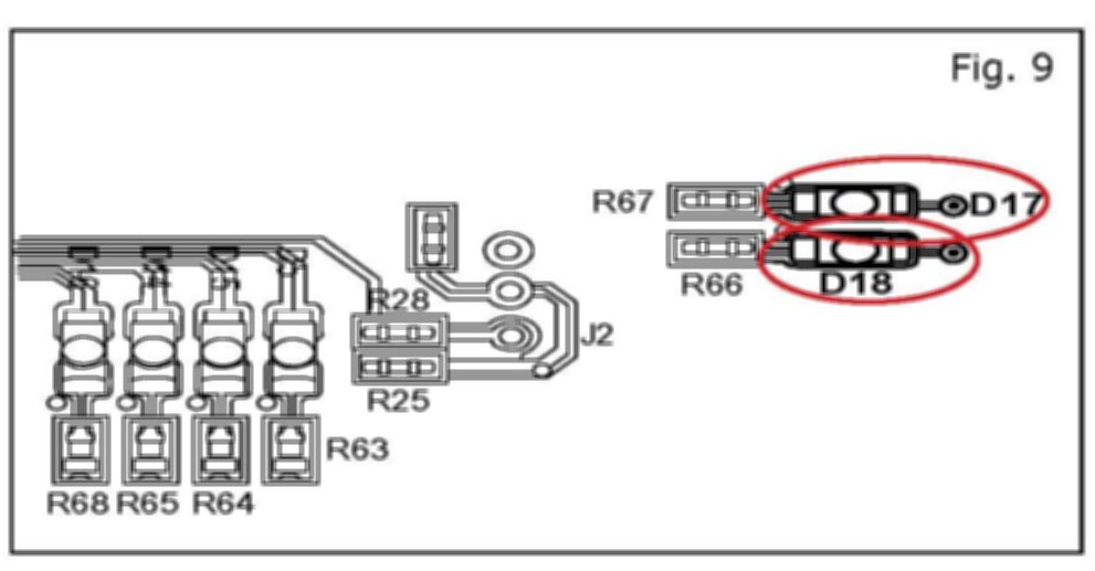 8) Re-flashing will take approximately 1-2 minutes. Upon completion of re-flashing, both D17 and D18 LED's will illuminate on field flash box while emitting a solid tone. (Fig. 9)