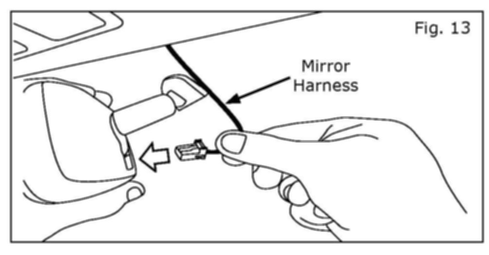 12) Locate interior mirror harness and insert 12-pin connector into back of interior mirror. (Fig. 13)