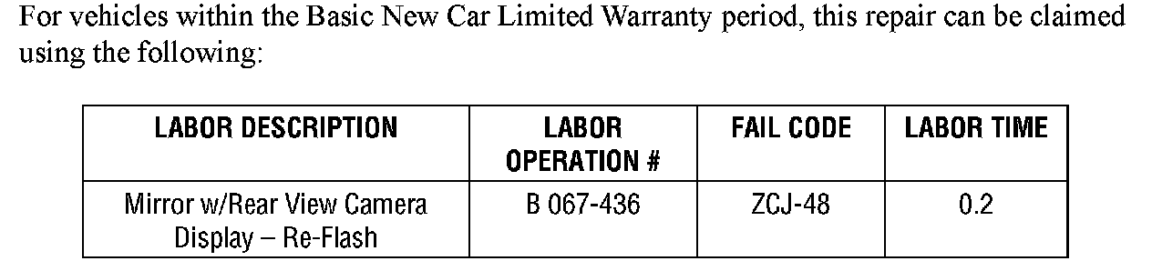 a) Display on left hand side of interior mirror will also turn on for 5 seconds, indicating mirror has been successfully re-flashed.
