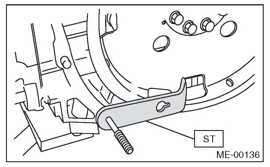 2) Use the ST to lock the crankshaft, and remove the drive plate.