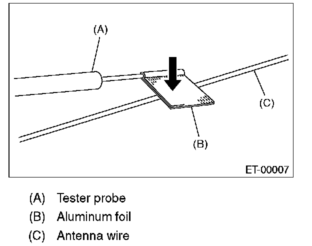 NOTE: If an antenna wire is OK, resistance will be less than 20 ohms. If an antenna wire is broken, resistance will be more than 1 M Ohms.