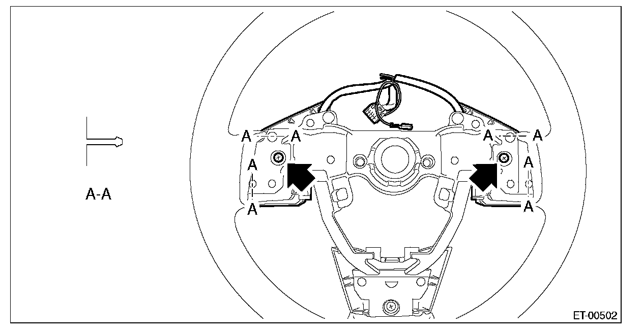 1) Remove the screw, disconnect the connector and remove the paddle shift switch. (Model with paddle shift)