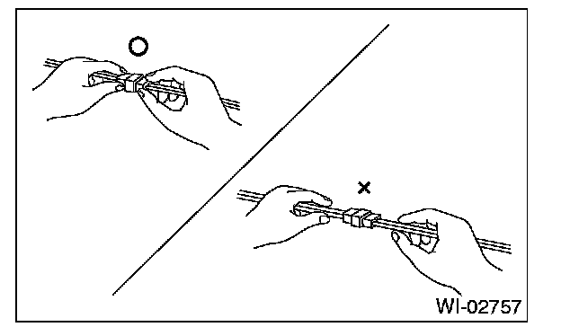2. Securely fasten the wiring harness with clamps and clips so that the harness does not interfere with the body end parts or edges and bolts or screws.