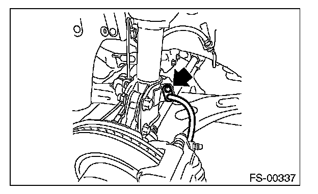 (4) Remove the two bolts securing the front axle housing to the strut.