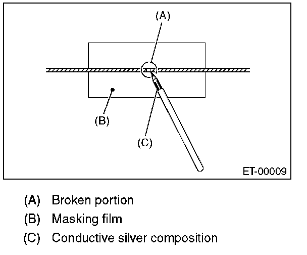 3. Apply the conductive silver composition (DUPONT No. 4817) on the broken portion with a drawing pen.