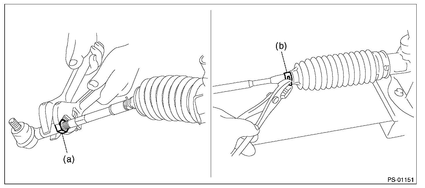 (2) Remove the clip (b) located outside the boot using the pliers, and then slide the boot to the tie-rod end side.