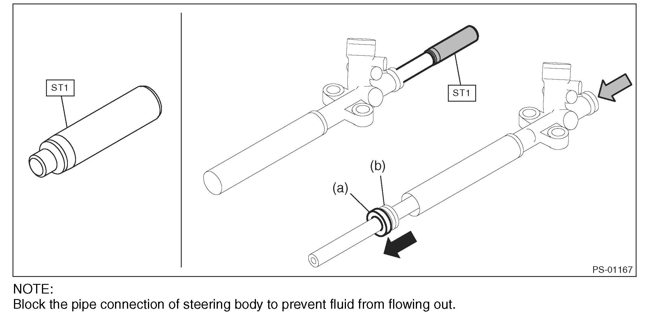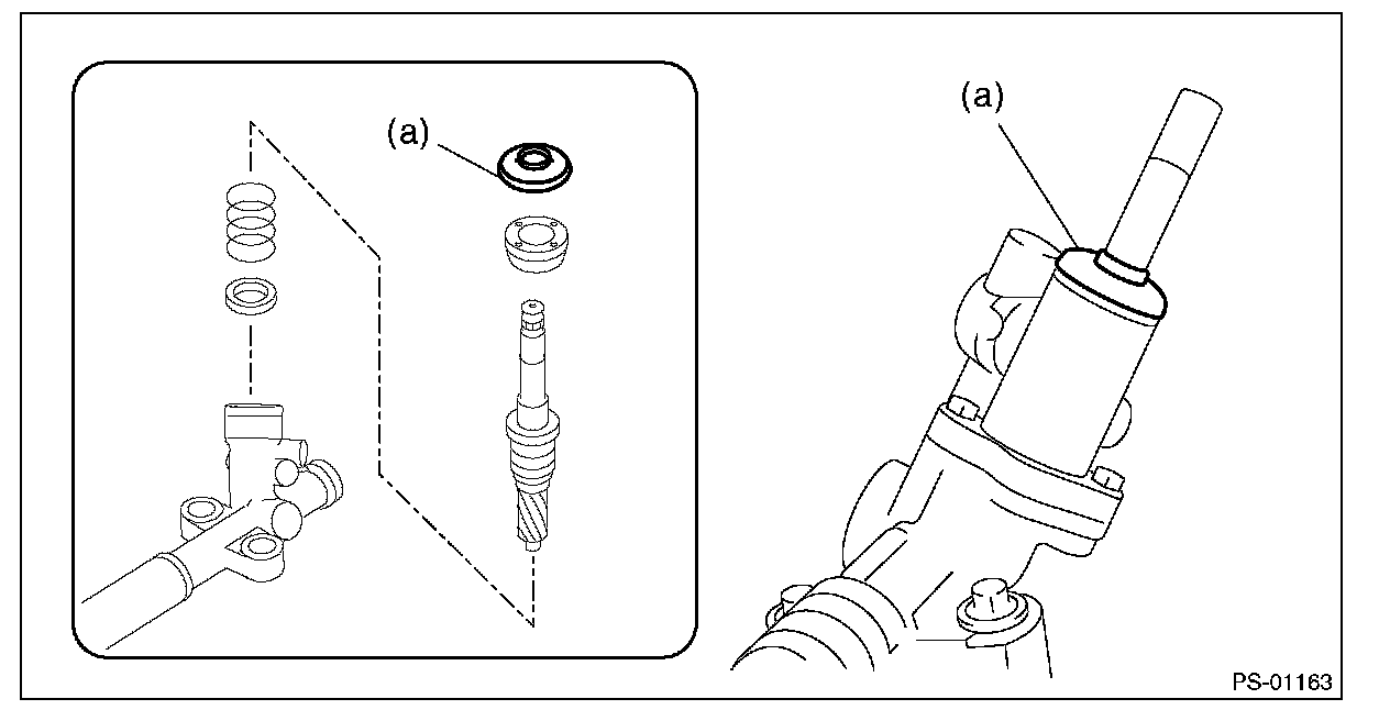 (3) Push the rack so that the rack piston (b) pushes out the outer side oil seal (a) to be removed.