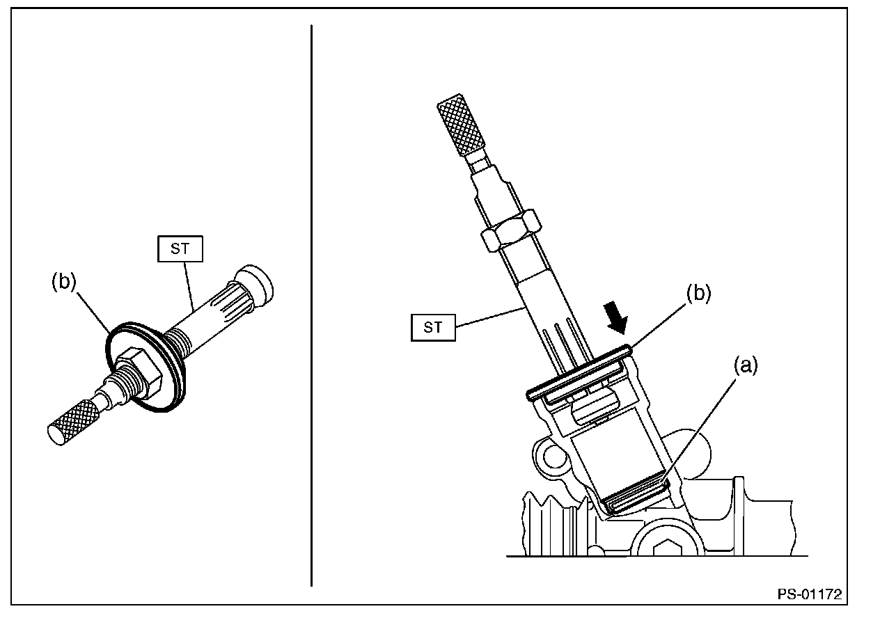 (2) Set the stopper (b) to gearbox, then insert the tip of the ST to the gearbox.
