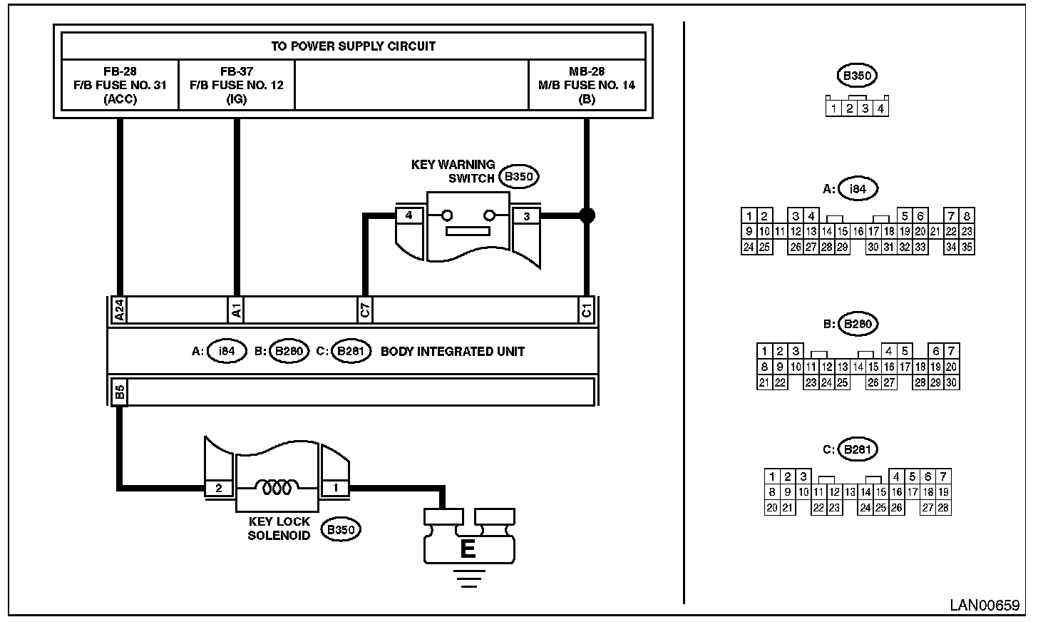 DTC B1105 KEY INTERLOCK CIRCUIT ABNORMALDTC DETECTING CONDITION: